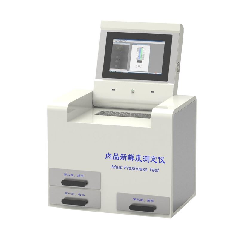 我公司自主研发的肉品新鲜度K值测定仪,是一款自动化程度高、操作简便的K值检测系统。该仪器运用电泳分离技术,可精准分离肉品样品中的关键能量代谢产物ATP、ADP,以及与腐败过程相关的HxR、Hx等物质。在紫外线照射下,ATP分解产物呈现出清晰的荧光谱带,系统通过专用图像识别技术快速分析,准确计算出反映新鲜度的K值,从而科学评估肉类、鱼类及禽类产品的新鲜程度。本产品适用于食品加工企业、餐厅、超市、饭店等场所,可用于各类肉类原料的质量控制与品质检测。